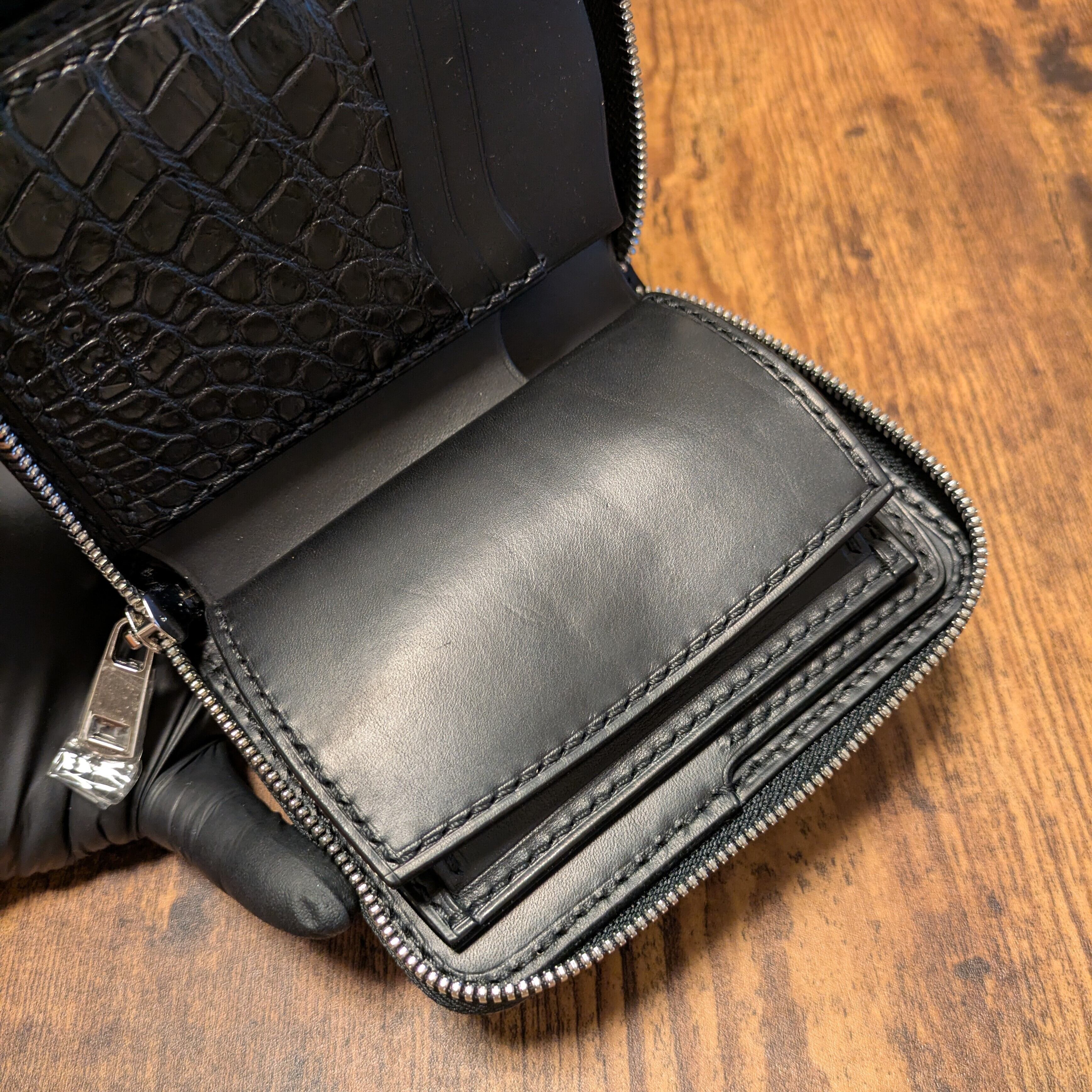 ポロサスクロコダイル“ディープブラック”ジッパーミドル〜Prosus crocodile“deep black”zipper wallet〜Belly hide