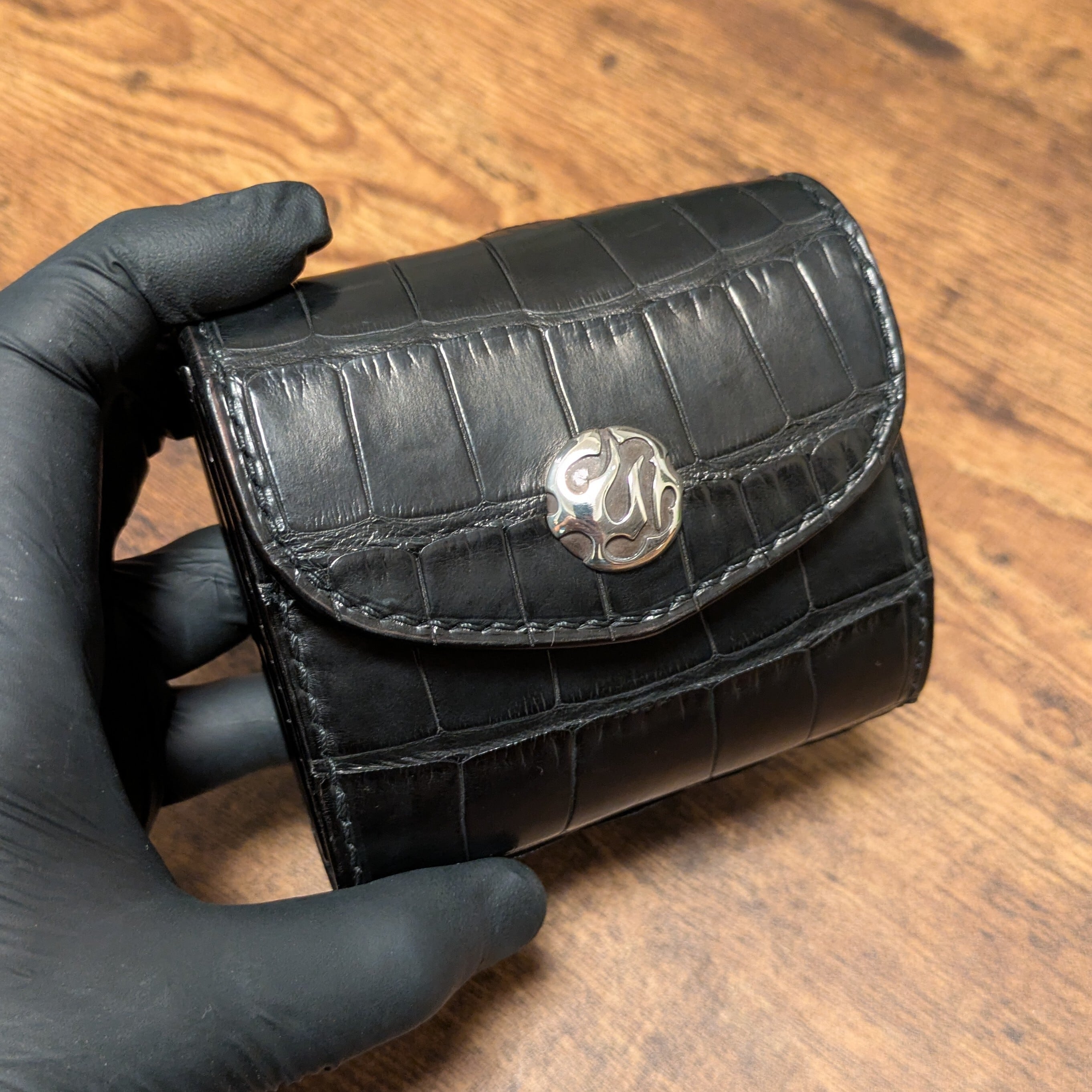 テイルゲーター“ディープブラック”コンパクトトリフォールドsvコンチョ〜Tail gator“Deep black”compact trifold wallet 〜svconcho
