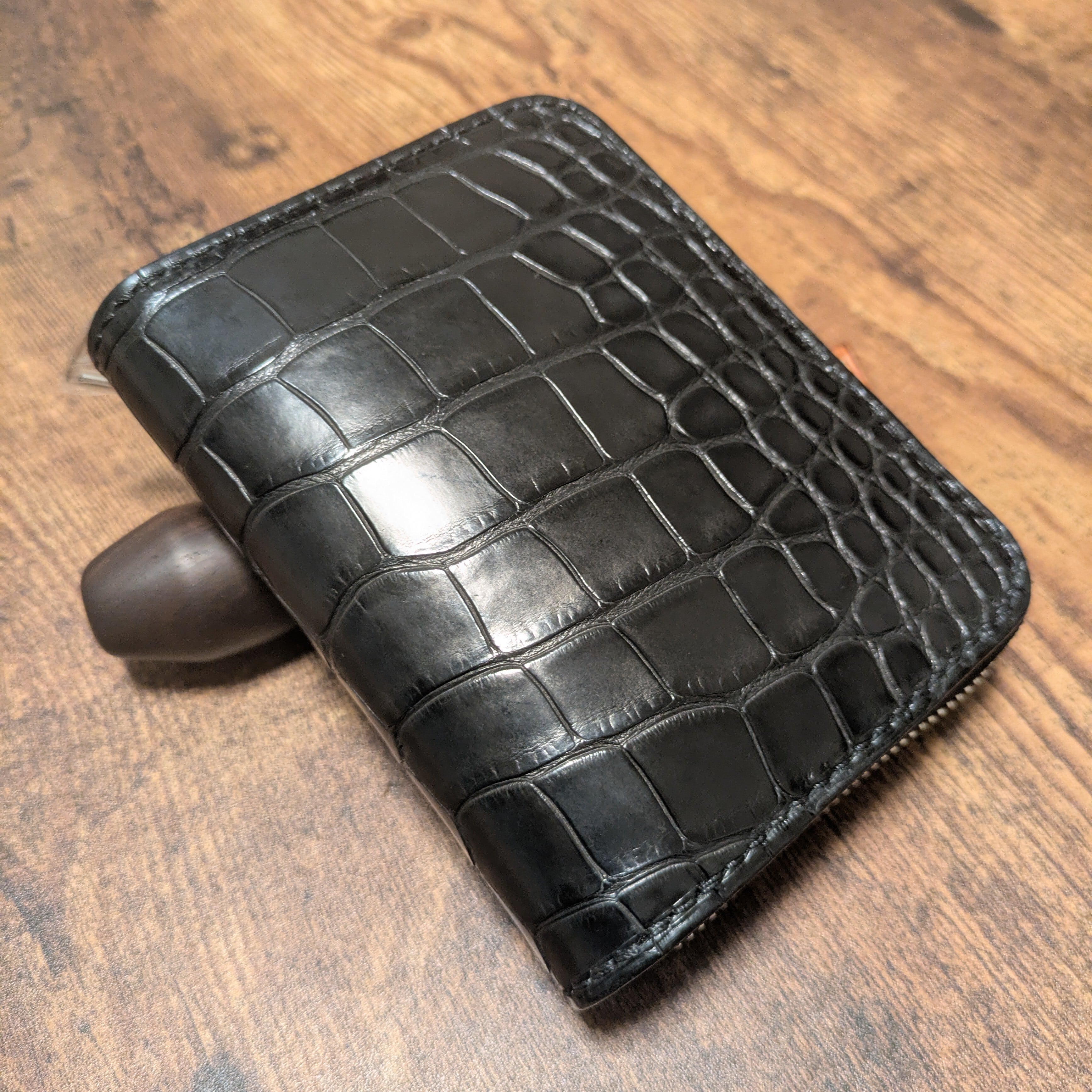 アリゲーター“ディープラック”ジッパーミドル〜Alligator“deep black”zipper wallet〜Belly hide