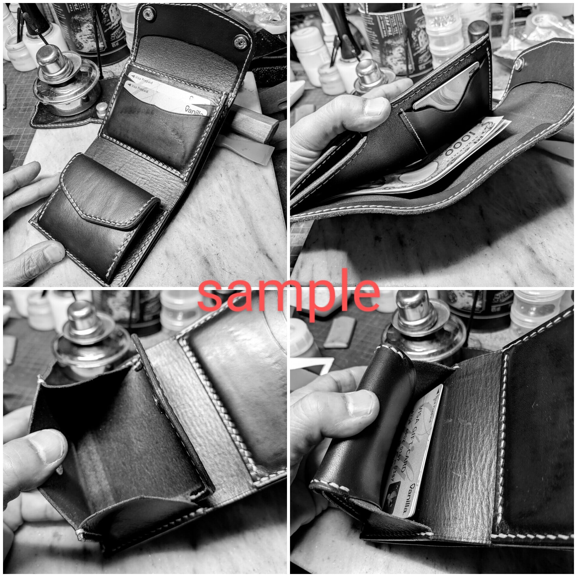 革の断面は、焼き締め加工を施し、何度も磨きをかけ丁寧に仕上げております。